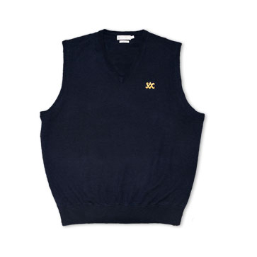Perfect for the office or your next springtime round. Our classically-styled Peter Millar merino wool v-neck sweater vest in navy is refined style at its best. From the elegant embroidered SC Diamond emblem on the chest to the PinFlag emblem on the yoke, this merino wool sweater will make a handsome addition to your wardrobe.
