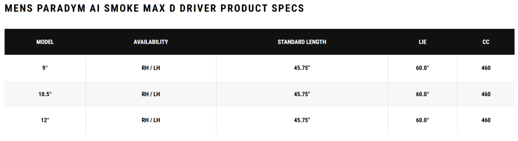 Visit Fairway Golf USA for more Specs on other Ai Smoke Clubs!